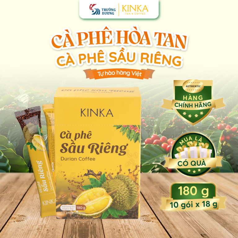 Cà phê hòa tan sầu riêng KINKA không chỉ mang lại hương vị cà phê đậm đà mà còn kết hợp với vị ngọt và thơm của sầu riêng, tạo nên một trải nghiệm thưởng thức đặc biệt. Đây là lựa chọn hoàn hảo cho những ai yêu thích sự mới mẻ và sáng tạo trong từng ly cà phê.