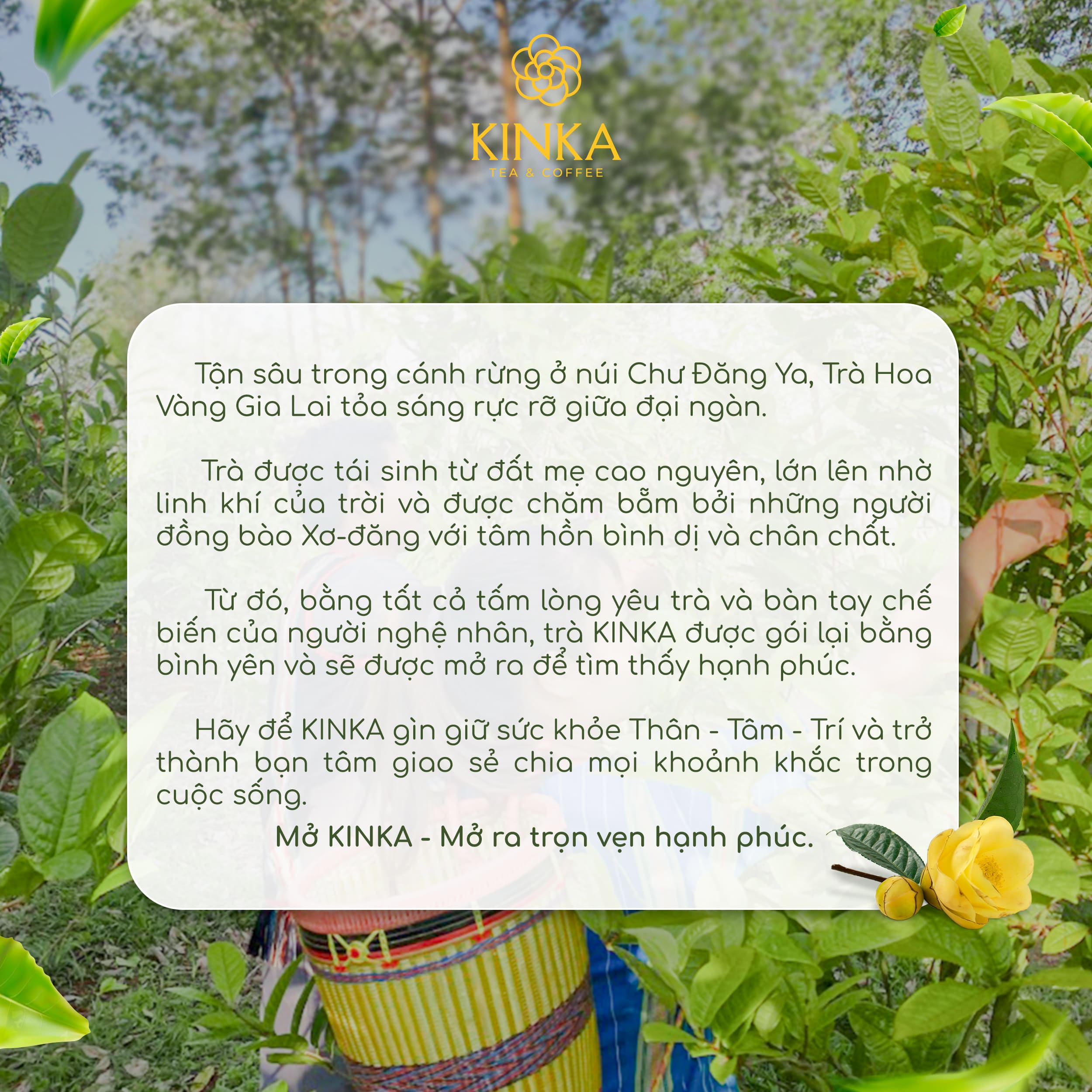 Lá trà hoa vàng Camellia Flava từ cao nguyên núi lửa Gia Lai kết hợp với trà xanh cổ thụ núi cao phương bắc tạo nên vị trà đầy ắp hương vị núi rừng, mang lại một nguồn năng lượng tươi mới và tích cực cho một ngày mới đầy phấn khởi.