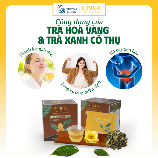 Trà hoa vàng là một loại thảo dược quý, chứa nhiều hợp chất polyphenol, flavonold, tannin... kết hợp cùng trà xanh cổ thụ từ Yên Bái mang đến nhiều lợi ích cho sức khỏe như: hỗ trợ ngăn ngừa các tác nhân gây ung thư, chống oxy hóa, hỗ trợ thanh nhiệt, giải độc và ngăn ngừa lão hóa.