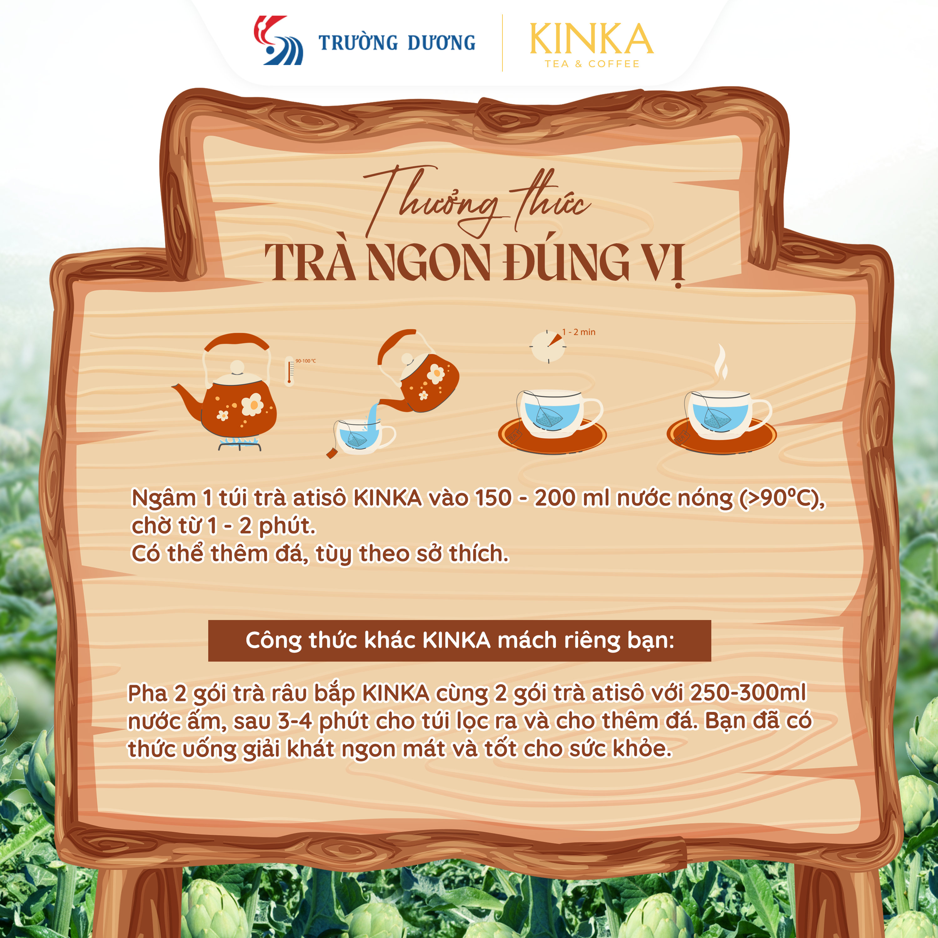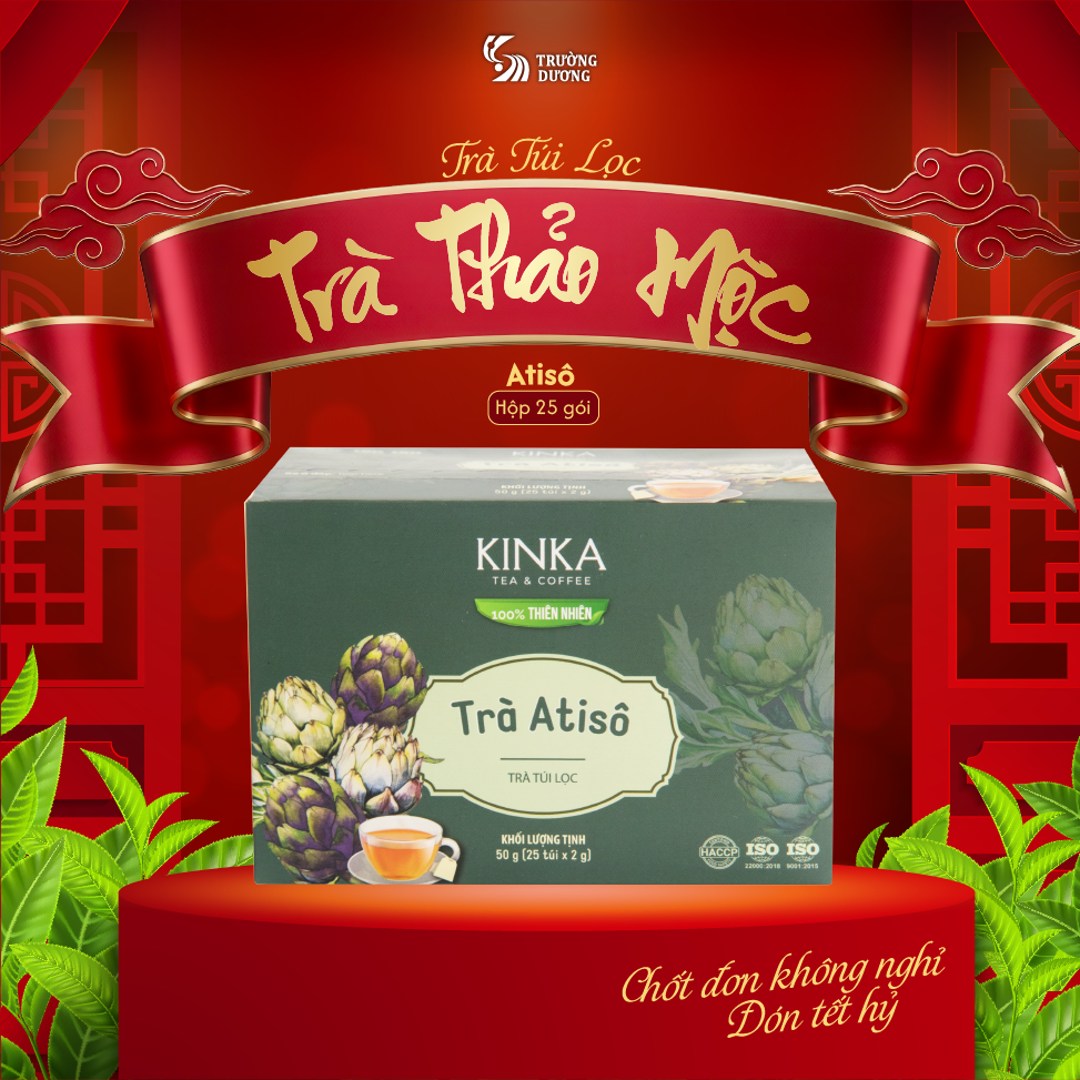 Trà túi lọc Atiso KINKA được làm từ 100% atiso, giữ trọn hương vị và giá trị dinh dưỡng từ cây atiso. Sản phẩm có hương thơm đặc trưng, dễ uống, không bị đắng, phù hợp với mọi lứa tuổi.