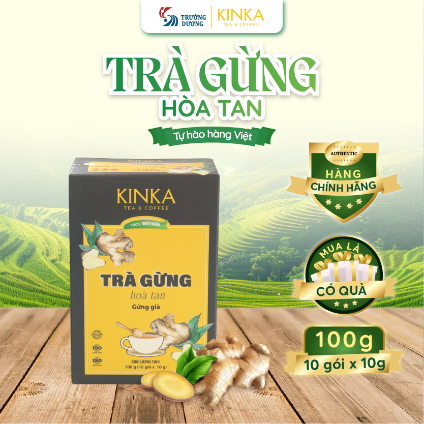 Trà Gừng Hòa Tan KINKA là sản phẩm từ gừng già, mang lại nhiều lợi ích cho sức khỏe và tiêu hóa.
